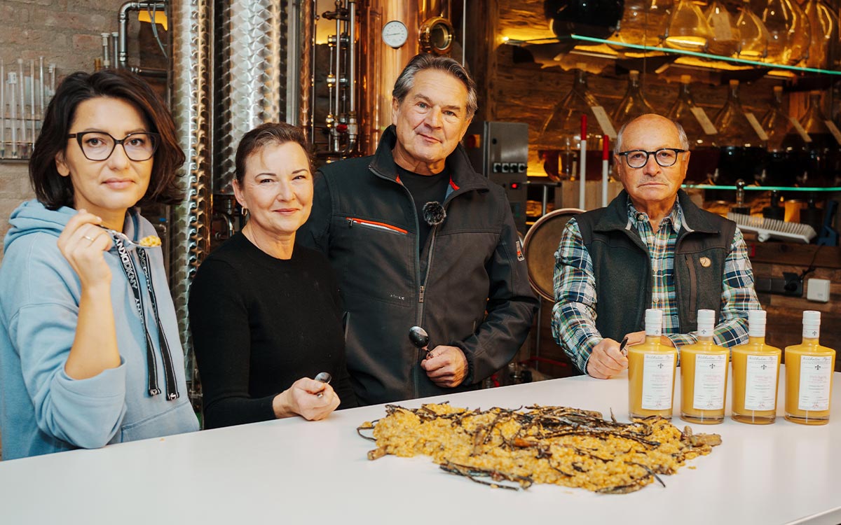 feine Madagaskar-Vanille, Zimt, Sternanis, Nelken und frische Orangenzesten verschmelzen zu einem samtigen Likör mit unverwechselbarem Weihnachtsaroma. Perfekt zum Genießen, Verschenken oder als feiner Begleiter zu festlichen Desserts.